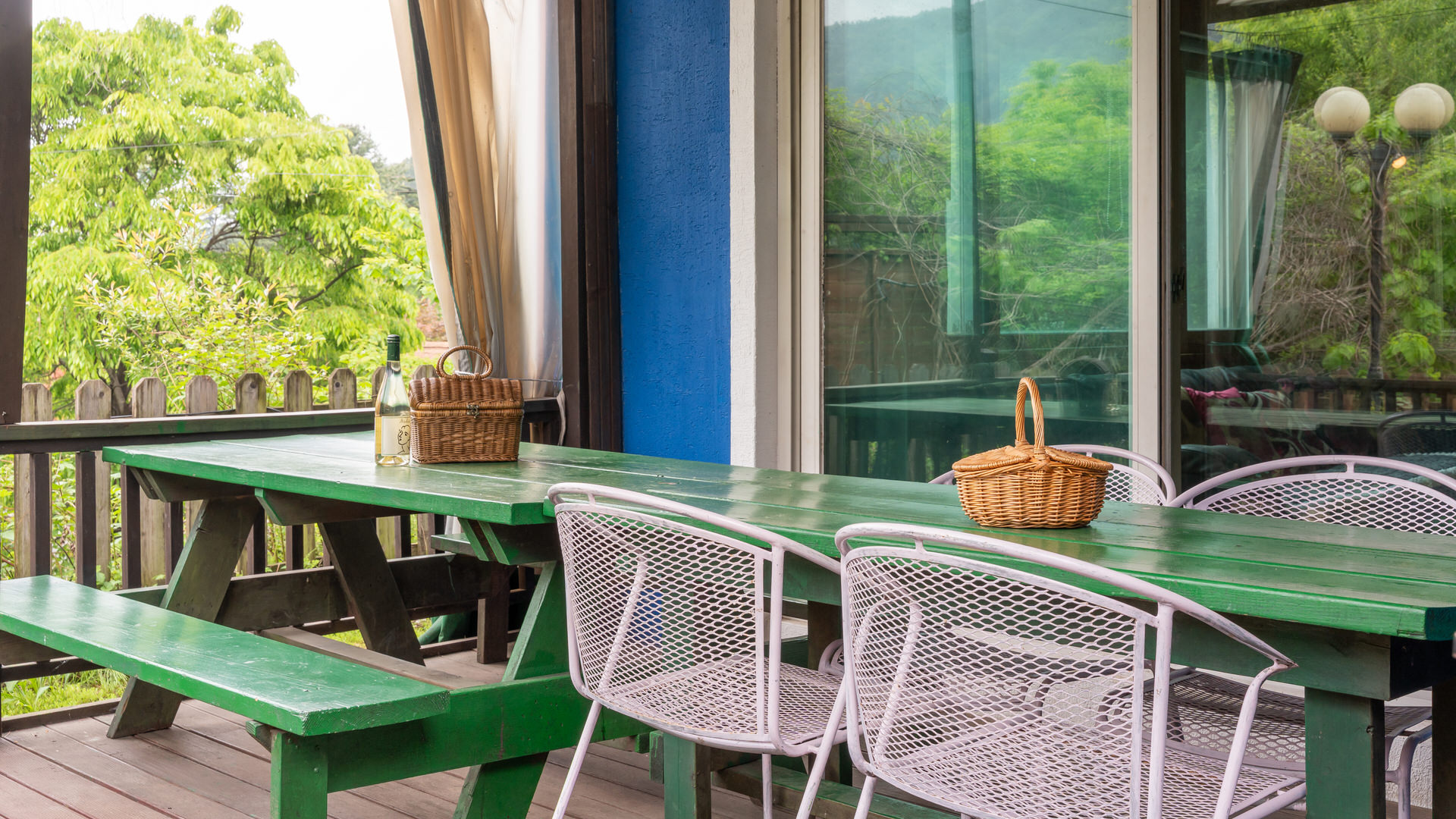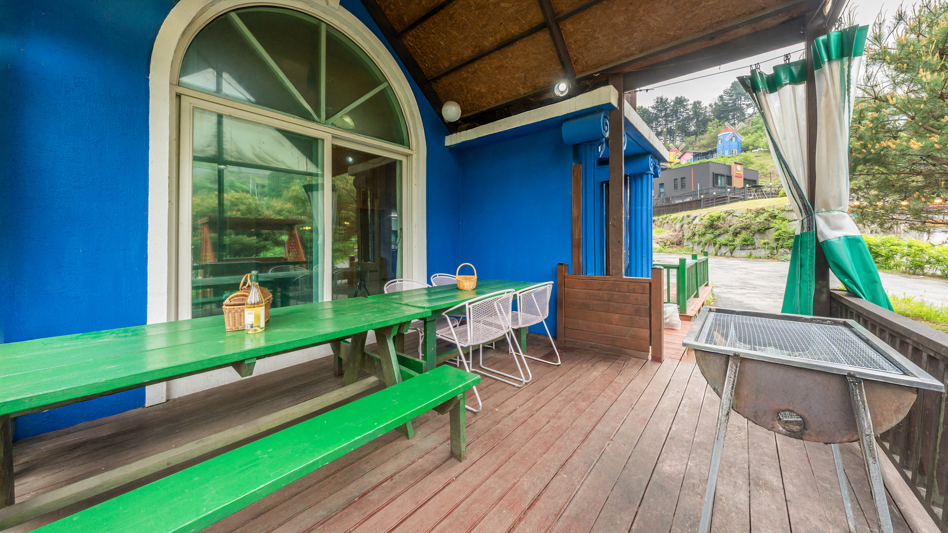 - 집기품목 : 욕실용품, 남녀공용, TV, 금연, 냉장고, 에어컨, 전기밥솥, 취사시설/도구, 식탁, 샴푸, 비누, 개별바비큐, 인덕션, 전자레인지, 바디워시, 치약, 타월, 와이파이, 침대방, 산전망